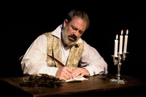 Tout est dit, interprété et partagé avec une telle émotion qu’au fur et à mesure de la narration apparaissent sur la petite scène du Théâtre de l’Essaïon l’ensemble des lieux et des personnages de la fresque hugolienne : entre la Thénardier qui maugrée, Javert qui rumine et la pauvre Fantine qui agonise, l’on voit alors s’élever graduellement la prophétique figure de Jean Valjean et l’on s’y attache. Certes, l’ancien prisonnier peut sembler haineux et renfrogné au premier abord, mais lorsque l’on prend le temps d’écouter sa vérité l’on découvre un océan de bonté et de bienveillance en cet homme.