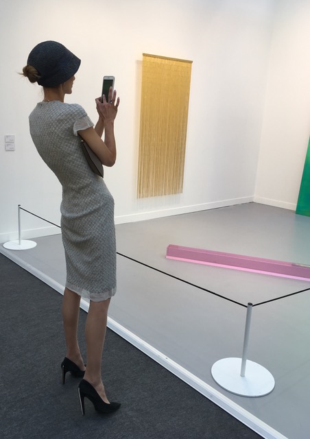 Quoiqu’il en soit, si les accrochages de la FIAC ne vous ont pas satisfaits, sachez qu’au Grand Palais le spectacle se déroule aussi au sein du public qui se transforme parfois en œuvres d’art. Qu’elles soit à fleurs, à rayures ou en adéquation avec la couleur de leur stand, ces demoiselles ont fait preuve cette année d’une très belle inventivité !