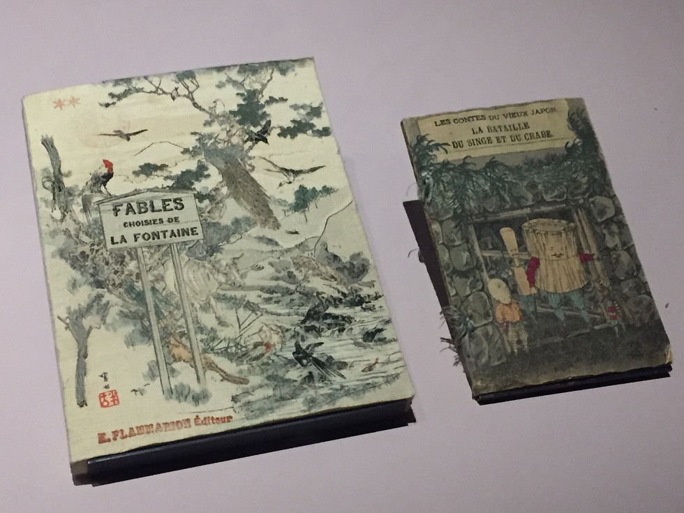 A chaque exposition universelle où ils sont représentés, l’art et artisanat japonais attirent de plus en plus l’attention. La revue indique que le Japon est le premier pays asiatique à avoir un stand dédié aux beaux-arts à l’Exposition Universelle de Chicago en 1893. L’intérêt pour le pays du soleil levant est si fort qu’apparaissent dès 1888 des publications spécialisées en français comme Le Japon Artistique. Ci-dessus l’on peut constater que Flammarion a de son côté sorti une édition des Fables de la Fontaine… illustrée par des artistes japonais!
