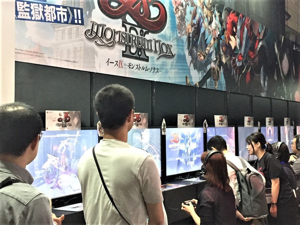 Ys IX était très demandé. Le jeu de Falcom, invité de Konami pour ce Tokyo Games Show 2019, ne cessait de recevoir les aficionados. Beaucoup de femmes également dans cette queue qui a duré jusqu’à une heure et demie au plus fort du deuxième jour presse. Certes, Falcom offrait de très jolies thermos à l’effigie des héros du titre, mais ça n’enlève rien aux qualités de gameplay de Ys IX : les combats fondés sur un très bon système d’esquive et des styles d’attaque très variés passionnent dès les premières secondes.