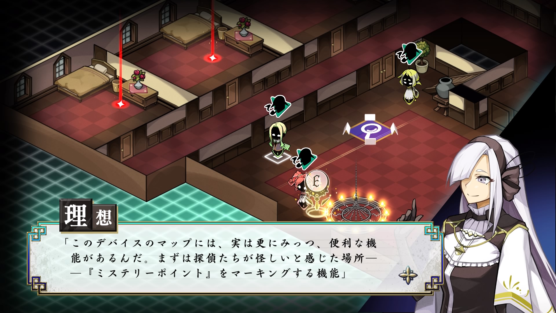 Seulement voilà, le diabolique criminel les a devancé et a déjà frappé le QG de la ligue des détectives! Wato est donc propulsé sur sa première affaire de meurtre, et c’est sous la direction du leader des détectives que le joueur découvre le gameplay. Celui-ci est plutôt original : on dirige les détectives du groupe sur un grille en vue du dessus (comme dans un RPG-stratégie) vers les différents points de mystère ou d’indices.