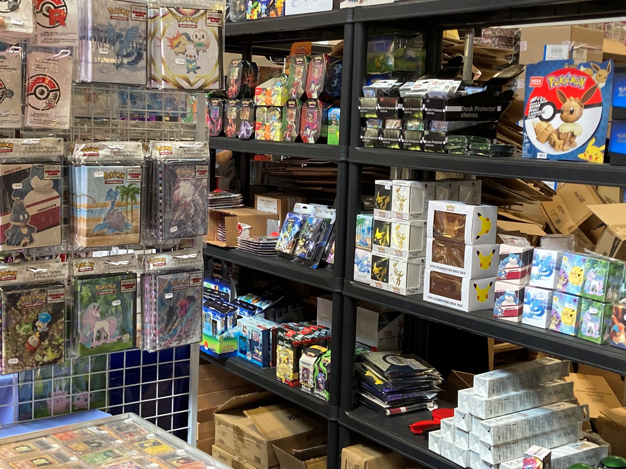 Toujours au détour des allées, on s’aperçoit que le jeu de cartes Pokémon prend de l’ampleur. La boutique Parkage déployait un assez grand stand pour ce seul TCG (alors qu’ils en gèrent beaucoup d’autres). On apprécie la présence de nombreux accessoires de rangement introuvables ailleurs, d’énormes decks et packs spéciaux. C’est là aussi qu’on peu constater la hausse de valeur considérable des cartes. Rendez-vous compte qu’un Mewtwo non édition-1 s’échange à présent 90€!