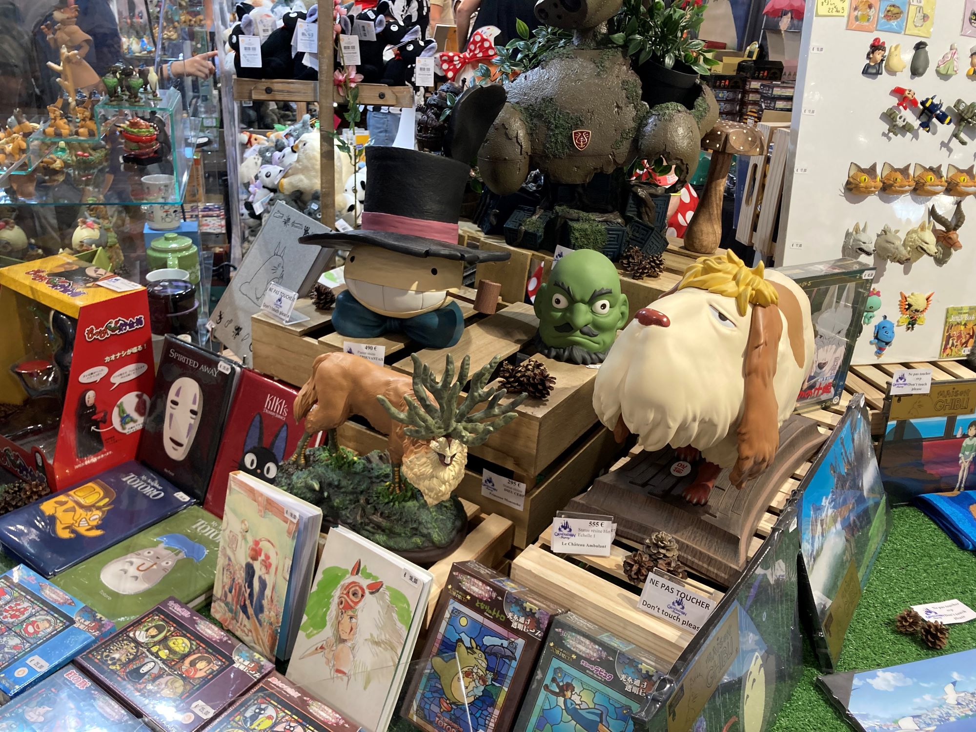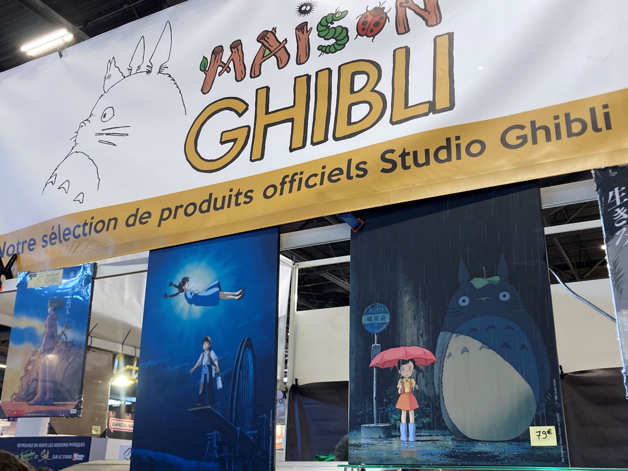 Comme souvent, ce sont les allées du salon qui renferment les curiosités et autre merveilles de la Japan Expo. A condition bien sûr d’avoir rempli son portefeuille, surtout si l’on veut un souvenir du stand Ghibli dont les prix donnent quelques sueurs froides. Comptez 555€ pour un reproduction du chien du Château Ambulant, ou 79€ pour un store en tissu (trois fois le prix japonais pour ce type de produit).