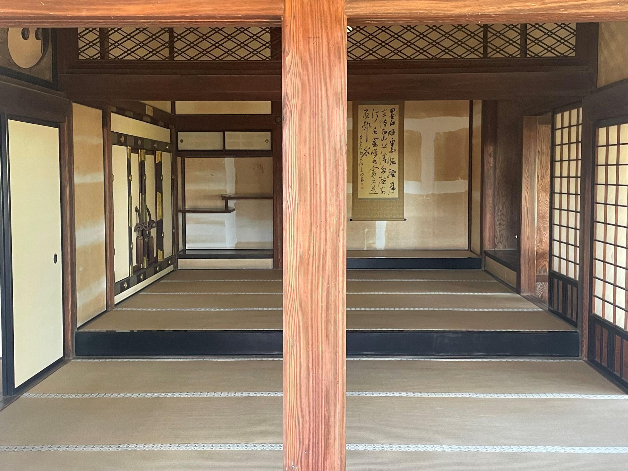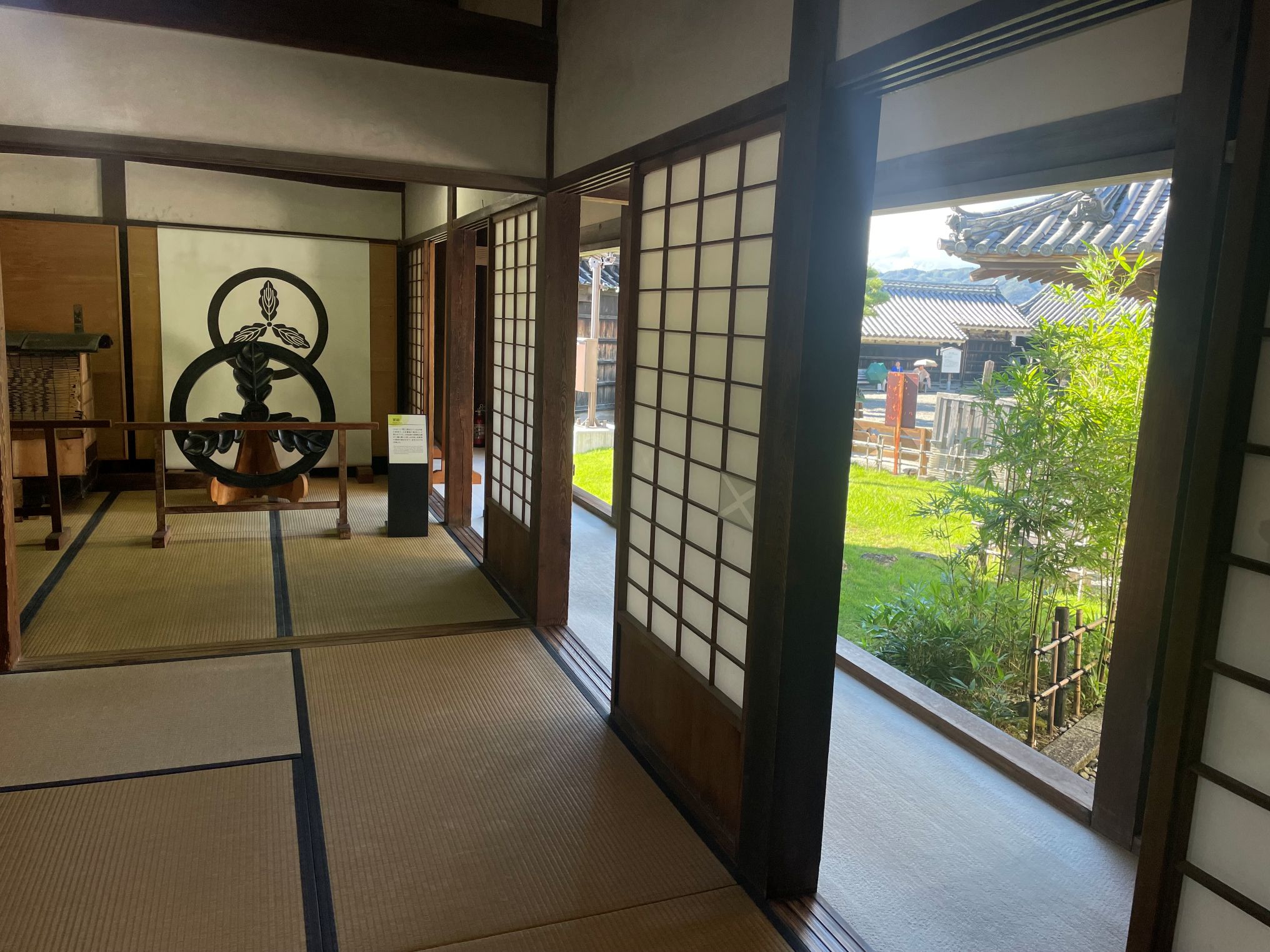 On y trouve une version grand format du symbole du clan Yamauchi. Il ne vous rappelle rien? Un certain Yatarô Iwasaki s’en inspirera bien plus tard pour fonder une grande entreprise japonaise, Mitsubishi. Si les Yamauchi avaient trois feuilles de chêne, Mitsubishi signifie littéralement “trois losanges”.